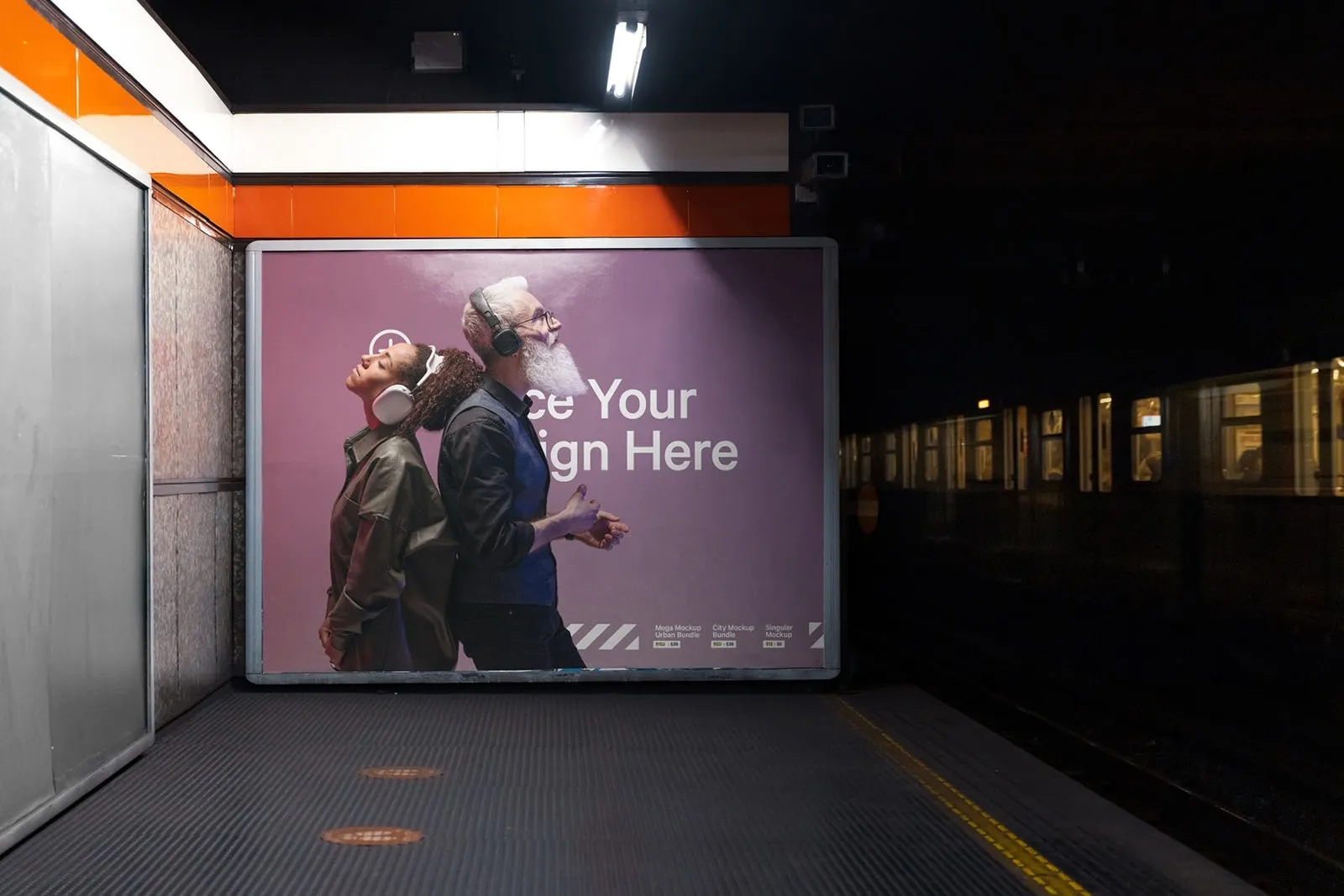 Dark Milan subway advertising poster billboard mockup