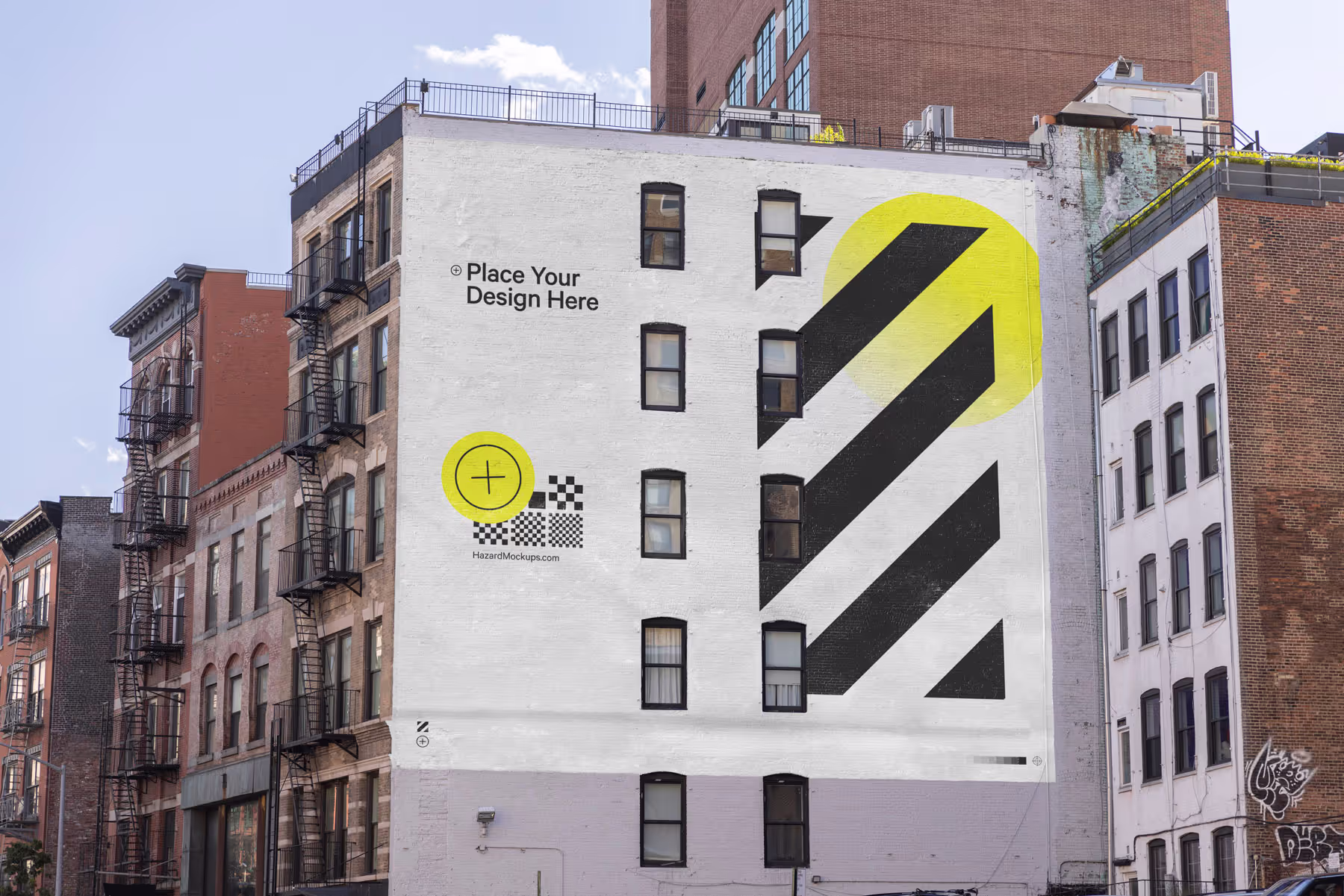 New York City mural mockup on brick wall