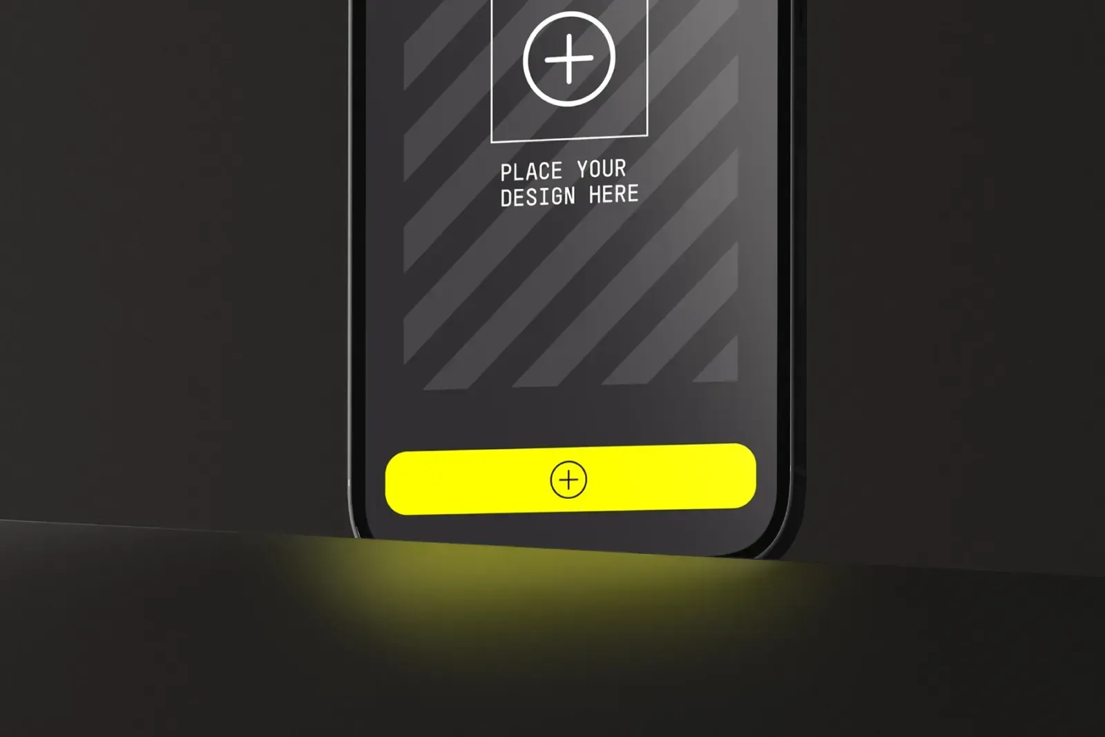 Minimal iPhone 14 Pro device in minimalistic studio setting on futuristic frosted glass table