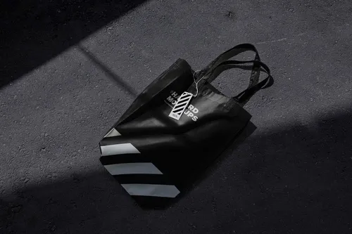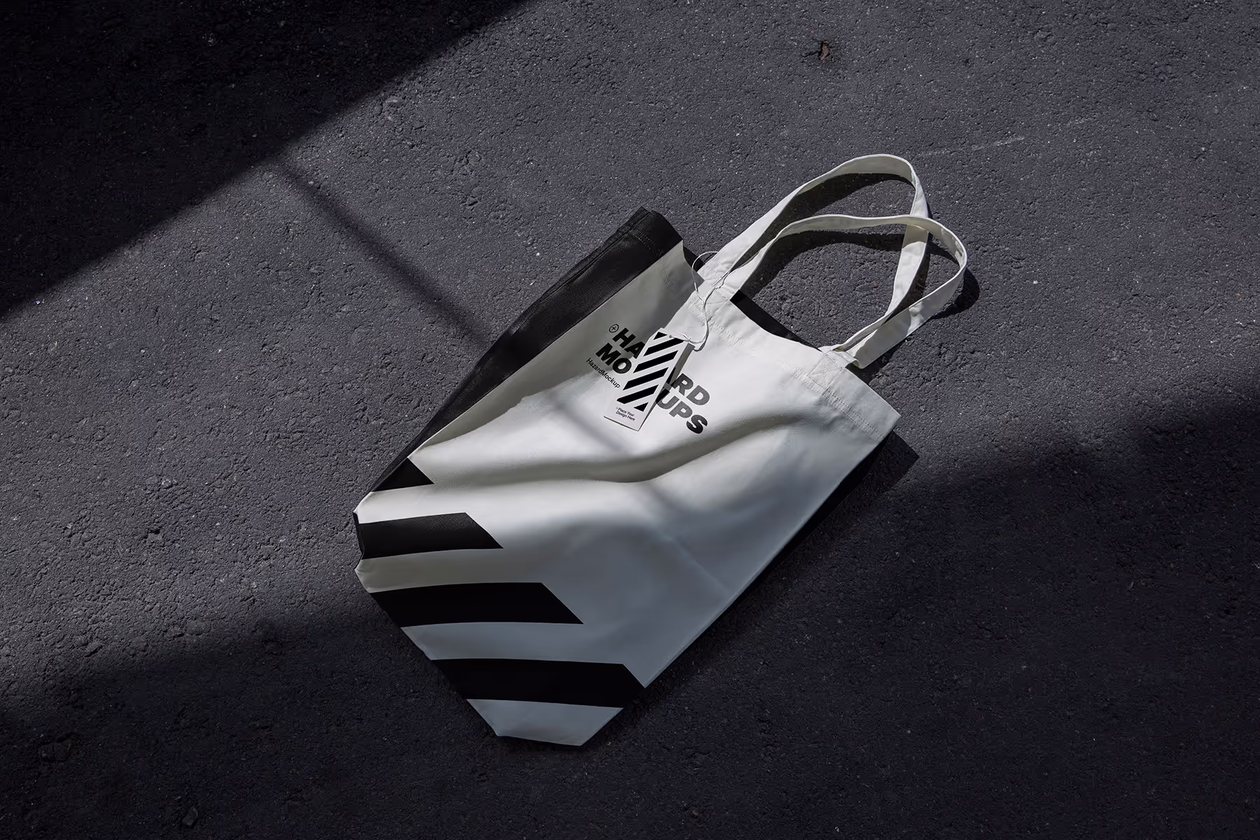 Minimal totebag mockup on dark concrete floor. With realistic shadows and 3D wrapping