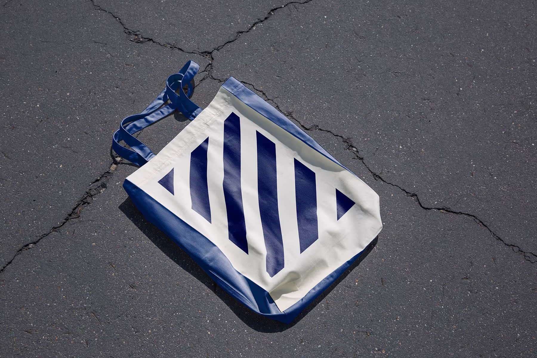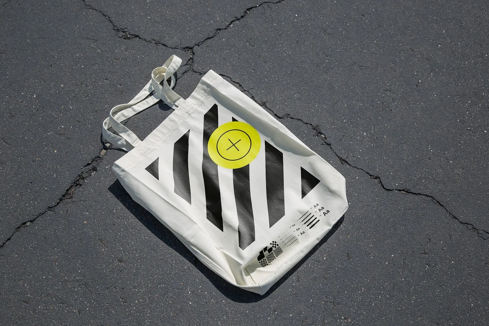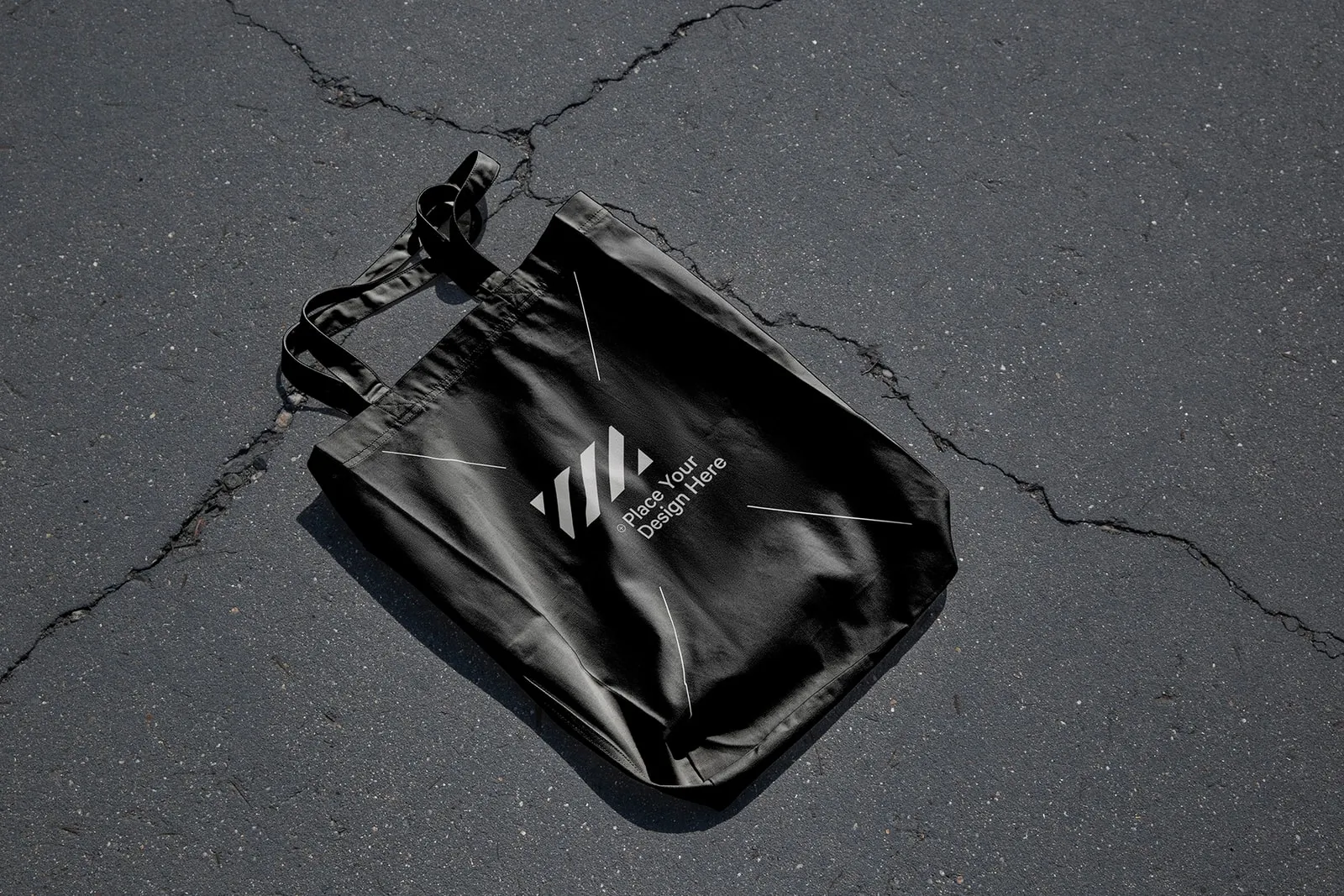 Minimal totebag mockup on concrete floor. With realistic shadows and 3D wrapping