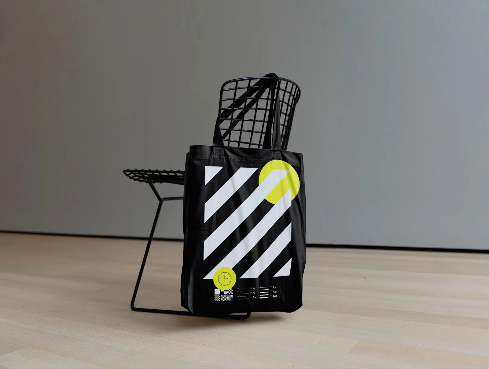 Tote bag mockup hanging on modern chair