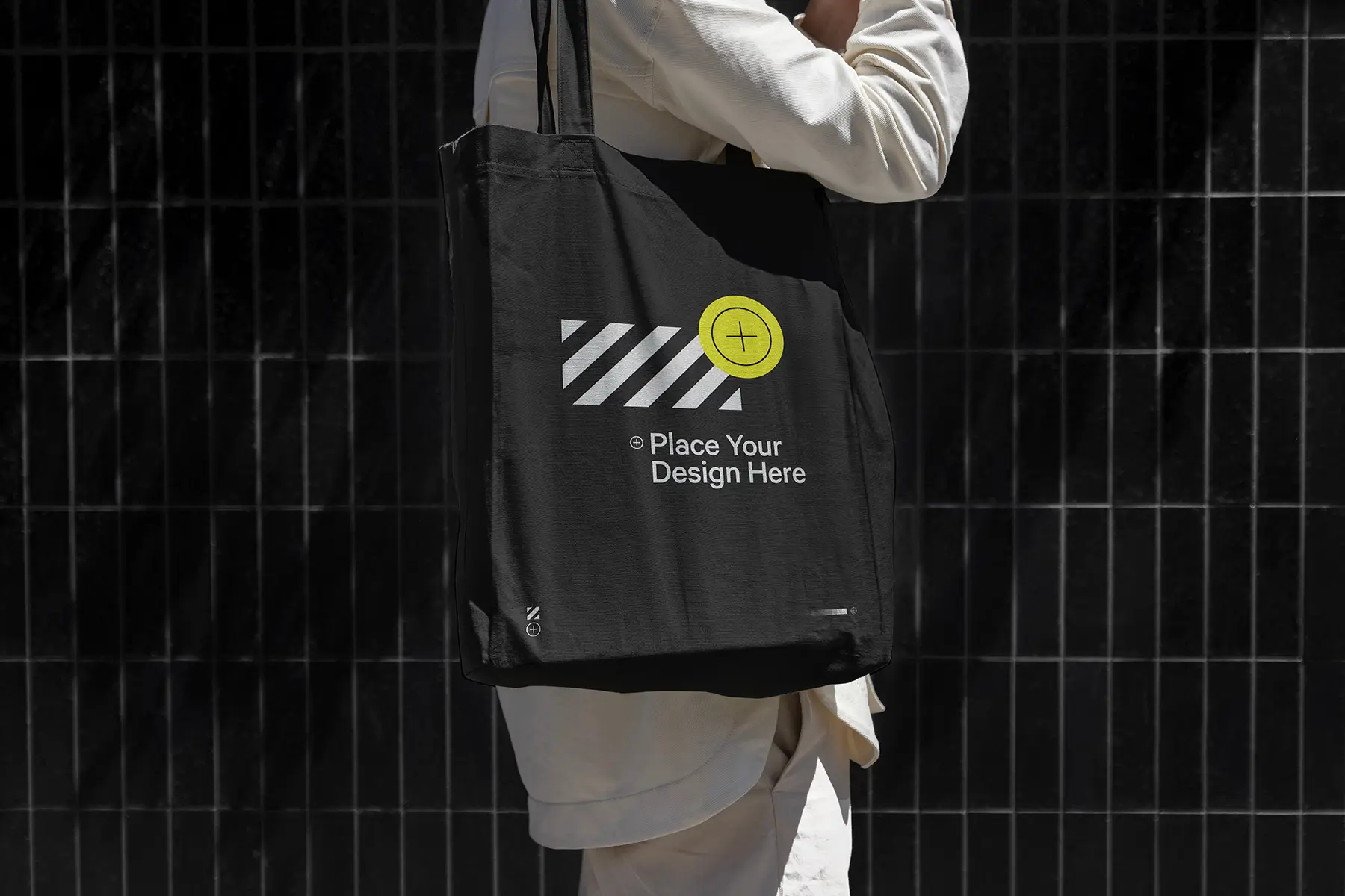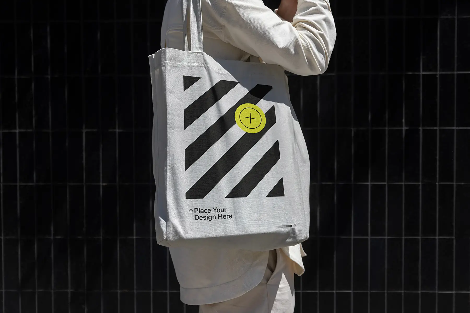Perfect for apparel and accessory brands, this mockup showcases a model walking with a customizable canvas tote bag, allowing you to change colors and designs. Ideal for capturing an authentic urban vibe, it's great for social media, e-commerce, and marketing presentations!