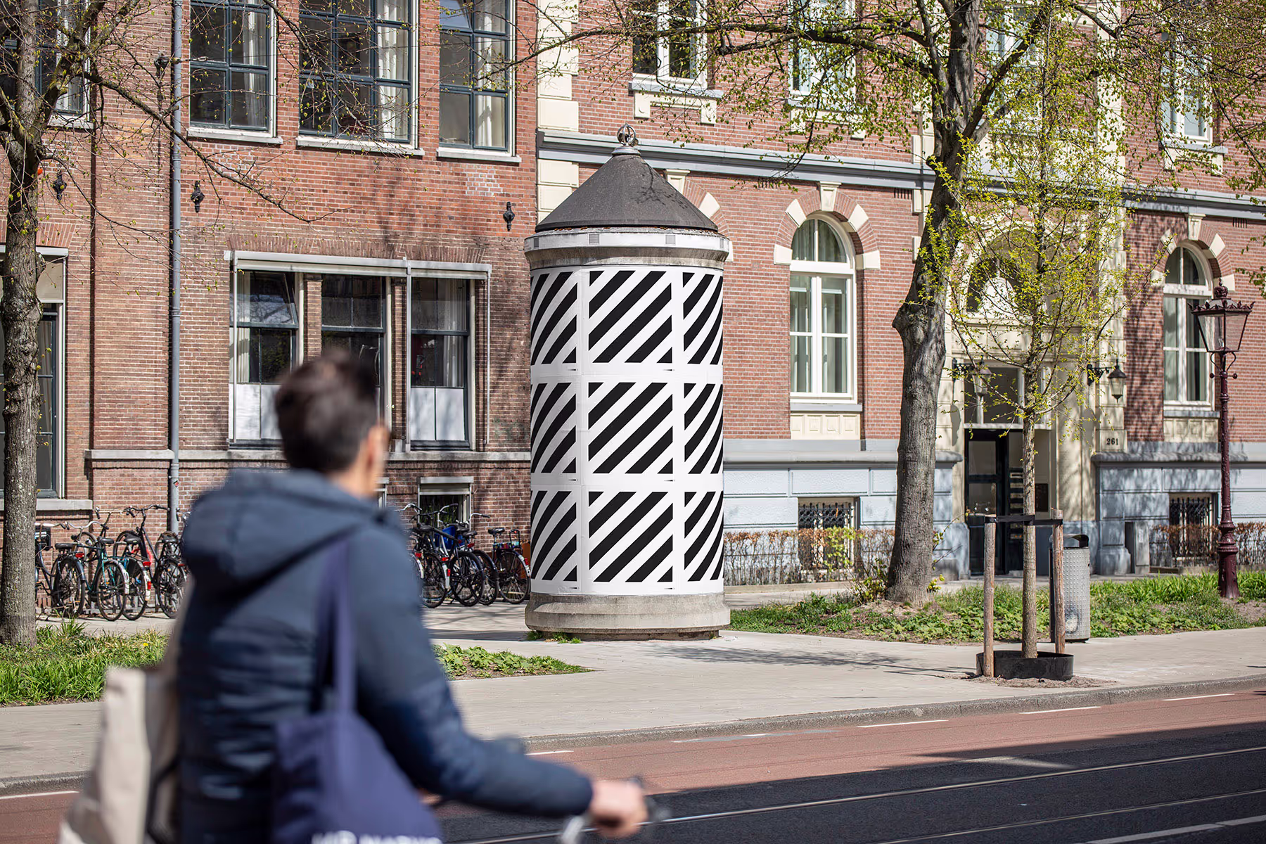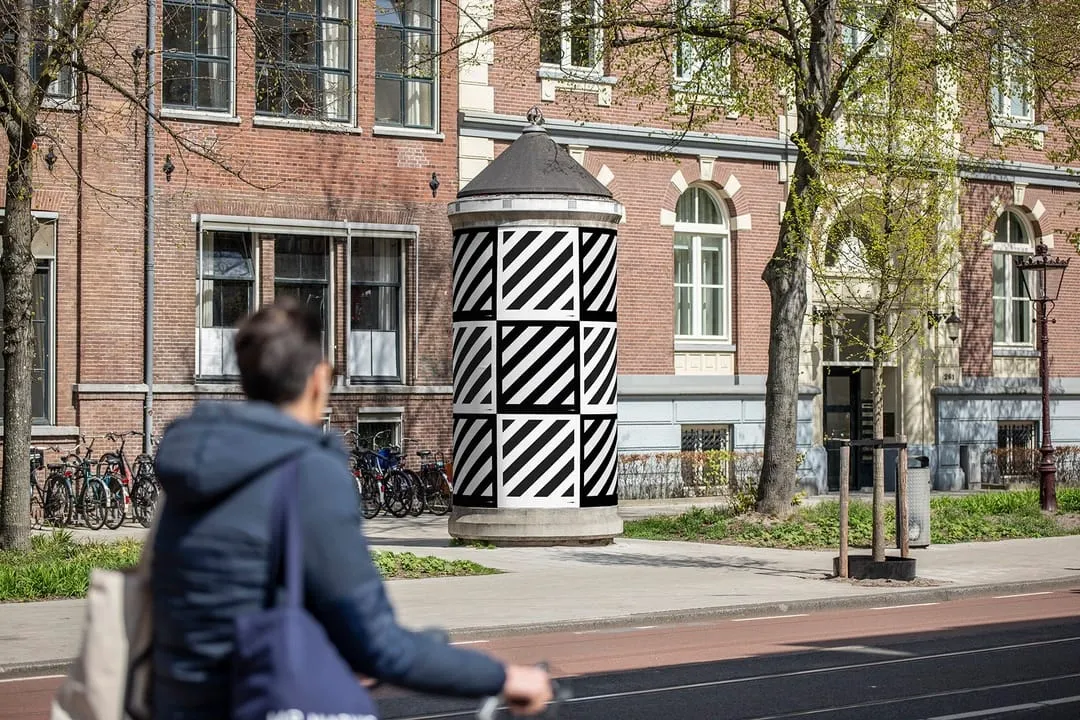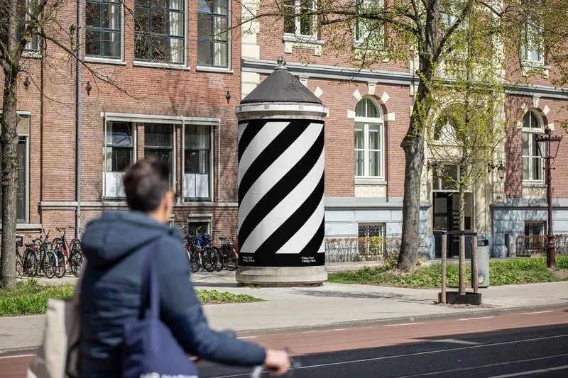 Poster pillar mockup with realist 3D wrapping. Unique advertising campaign mockup