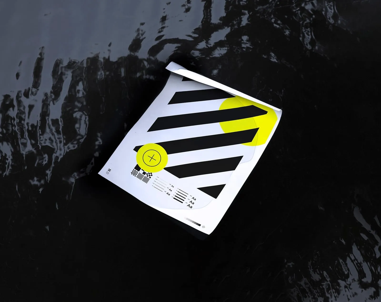 Unique curved paper mockup cover with water