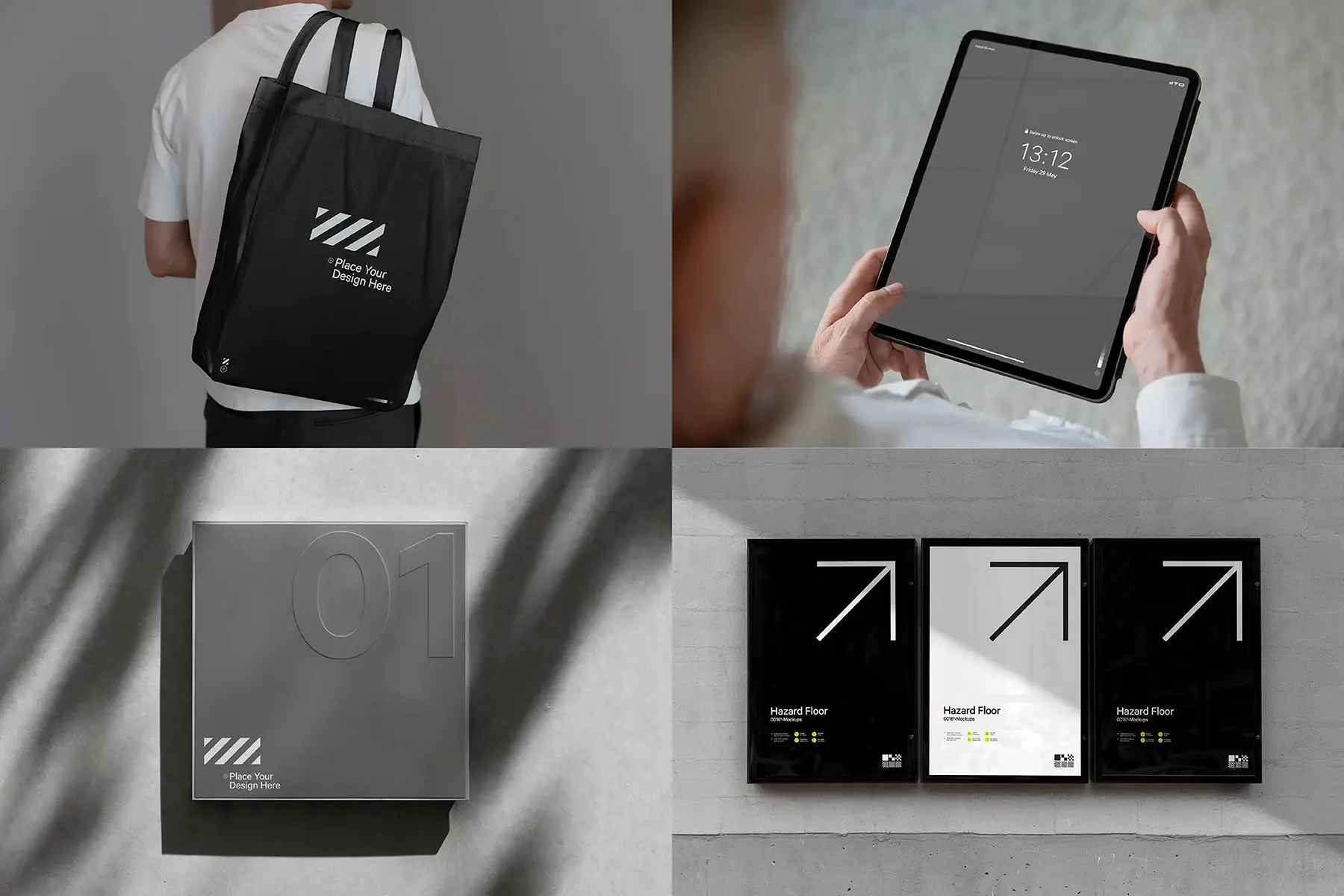 This out of home mockup set is the perfect start for your new project. Display your design in a curated set of premium mockups. Perfect to show the range of your design in different settings. Combine a signage mockup, device mockup, poster mockup and totebag mockup to full display your design project.