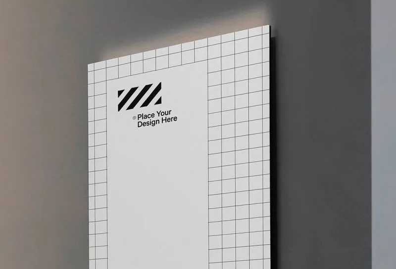 Horizontal wayfinding signage board mockup in minimal space. This mockup is perfect to present your event, museum or other branding identity. High resolution and very easy to adjust.