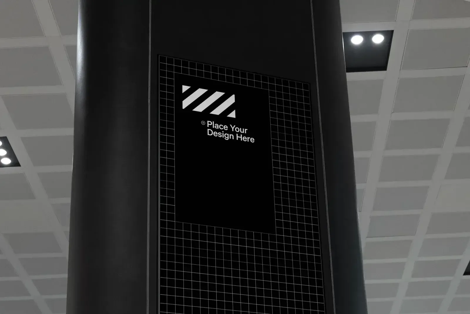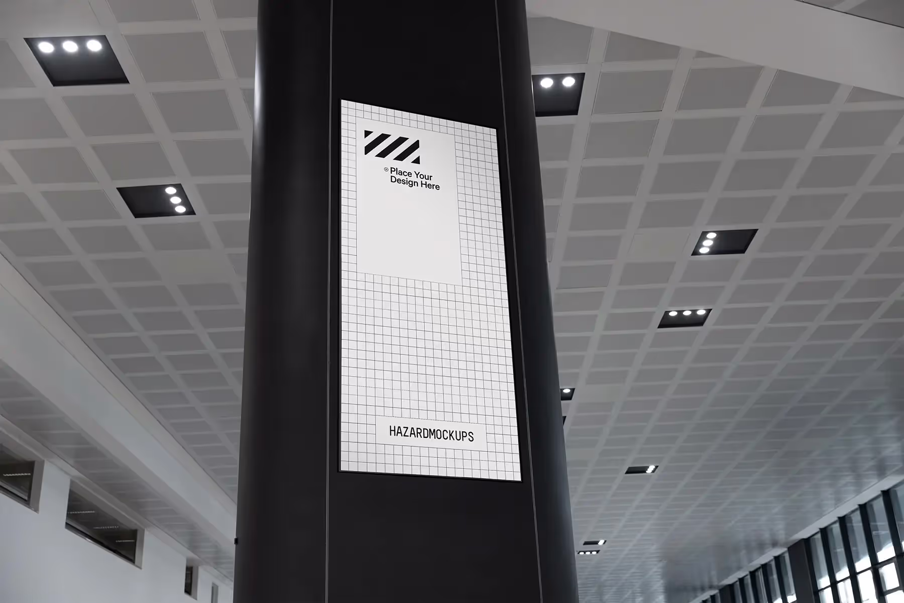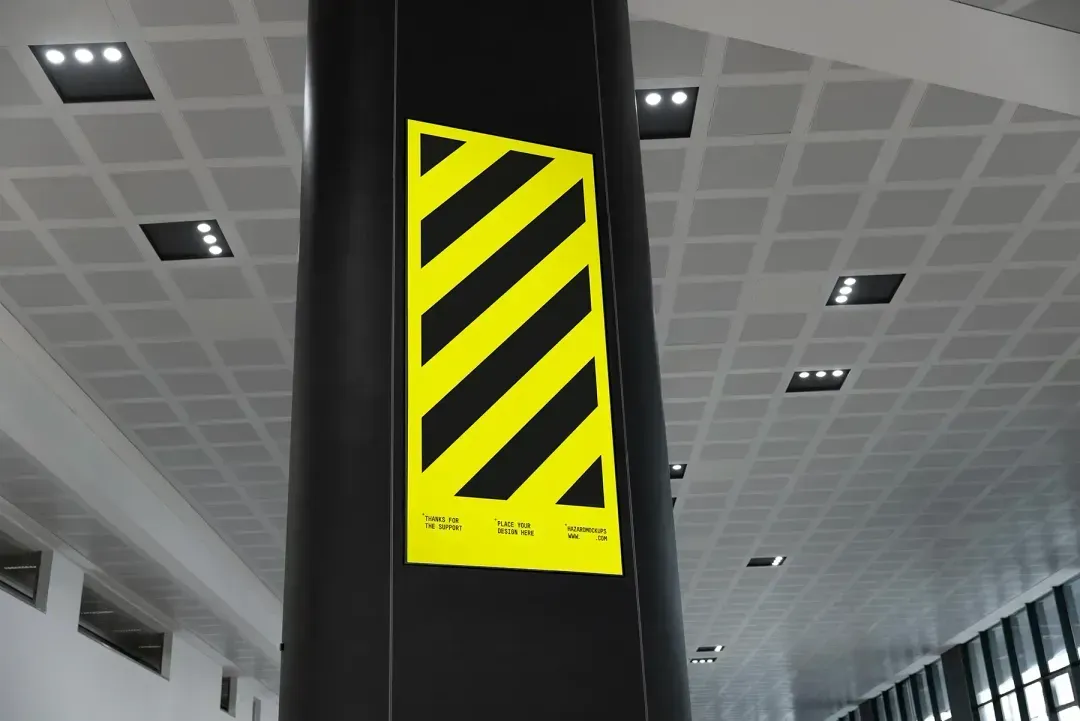 Present your branding project in style with this large digital signage mockup set in a spacious entrance hall. Perfect for any category, this mockup allows you to effortlessly drag and drop your design, offering a realistic preview of how it will appear in the real world.