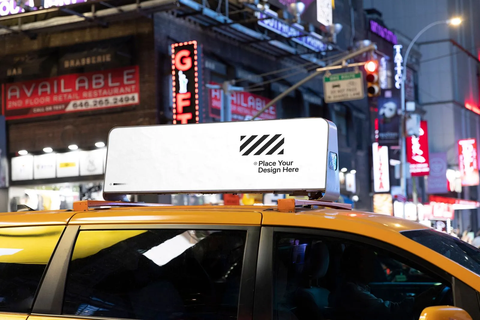 Yellow cab mockup in New York City on Times Square